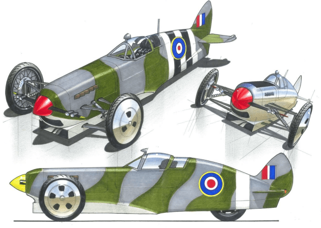 With this in mind we have made a road going version based on our three wheeler concept. It re-creates the look and feel of the aircraft with its styling and sliding single seat cockpit canopy.